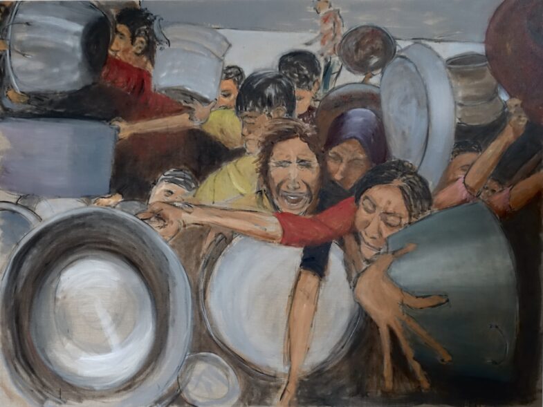 Portrait of Mabel (2025) Oil on linen 101.5×76.5 cmsTowards Bramley Edge 2 (2025) Oil on linen 41×61 cmsBen (2025) Oil on linen 30×30 cmsHistory in Transit (2021) Oil on linen 145×198 cms. After a photo by Lynsey Addario https://www.lynseyaddario.com